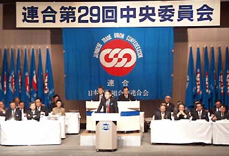 With regard to wage demand, it was decided that Rengo should aim at a raise to the wage level with which workers could feel the improvement of living conditions. In the individual-specific wage system, the wage of a worker at the age of 35 years (a high school graduate serving for 17 years) should be 323,000 yen or more and there should not be a worker at the same age earning 250,000 yen or less. Mr. Washio, the President of Rengo, remarked that the current economic situation was threatening the people's living and pointed that the economic package of 24 trillion yen introduced by the Government on 16 November was just to spend the money recklessly as in the past. He emphasized that what was the most necessary was employment security measures, which Rengo believed would ease the sense of insecurity among the people and then could stimulate consumption, introducing the Rengo-proposed plan of creating 1 million jobs. As regards the 1999 Spring Struggle, he stated: "Those who are in a better situation should put their effort to wage increase and the shortening of working hours, which then will have no small effect on the wage increase for all. Through the individual-specific wage system, we should win at lease the result maintaining the present living conditions and overcome the difficulties we are faced with." |
