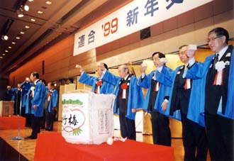 | RENGO held its usual New Year reception at a Tokyo hotel January 5. 1,500 participants from each community gathered including Labor Minister Amari (proxy for Prime Minister Obuchi), Chairman Nemoto of Nikkeiren, Democratic Party Leader Kan, Komeito Leader Kanzaki, Social Democratic Party Secretary General Fuchigami, Reformers' Network SG Ishida, LDP SG Mori and Liberal Party SG Noda. The New Year celebrants expressed their wishes that the coming year would open the door to new prospects. |