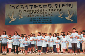 Prior to the Hiroshima Peace Rally, a Peace Walk and a seminar were started at noon on August 5. The seminar gathered approximately 300 participants with the following themes: [1] peace movement activities at the workplace and in local regions, [2] activities to support A-bomb victims. RENGO Acting President Sakakibara stood to deliver a speech representing the organizers at the rally that same afternoon. He criticized the Bush Administration's opposing trends towards world peace by their railroading through subcritical nuclear experiments. He stated that "we should pay the most attention to the present conditions where nuclear weapons are changing in their status from deterrence to mere war weaponry." He appealed so that "people from all over the world should protest against the United States." Finally, he cheered on the 2,500 attendees to "realize a peaceful world without the fear of nuclear weapons, let us expand our activities." RENGO Hiroshima President Morikawa emphasized the importance of continuing the movement saying, "we want to expand the movement network regardless of however small the leverage is. Let us continue to appeal for the abolition of nuclear weapons which may yield massive bloodshed." After Hiroshima Prefectural Governor Fujita's message was read, Hiroshima City Mayor Akiba made a speech and the participants moved to the site of the Hiroshima Peace Memorial (Genbaku Dome). They all prayed for the repose of the victims' souls as well as for everlasting global peace, and waved penlights in the night sky. On the following day, August 6, Acting President Sakakibara and others attended a peace memorial held by the city of Hiroshima. The caravan consisted of RENGO Headquarters, RENGO Hiroshima and RENGO Nagasaki attended a "Nagasaki Peace Bell" ceremony held at Hiroshima City University. The plea for peace was passed from Hiroshima to the Peace Rally in Nagasaki held on August 8 and gathered 2,500 people from across the nation. Acting President Sakakibara gave a speech representing the organizers urging those to "let us fortify peace movements in the workplaces and local regions. Moreover, let us take great strides forward with the RENGO peace movement." Nagasaki Prefectural Governor Kaneko and Nagasaki Mayor Itoh each gave a speech at the rally. Afterwards, RENGO Nagasaki President Kamitani greeted the audience in his speech saying, "it is Nagasaki's duty to spread information for peace and to continue to do so. Let make the elimination of nuclear weapons and permanent peace a reality as early as possible." After the speeches, a poem and drama recitation was performed entitled "Families Plea for PeaceOppose Disintegration." Approximately 80 union members and their families participated in the poem and drama recitation, which was created to convey the horror of the A-bomb as well as the preciousness of life via songs, recitations and sign language. The sincere plea to across generations left the hall in solemn silence. The next day, August 9, a symposium was held that gathered 250 attendees, where a panel discussion was held under a theme of "A Proposal for Peace Politics and Peace Movements." That evening, 500 people, far higher than usual attendance, participated in "Mando-Nagashi," or a floating lantern offering ceremony. As participants and citizens floated 1600 lanterns on the Urakami River, their prayers for peace overflowed. |