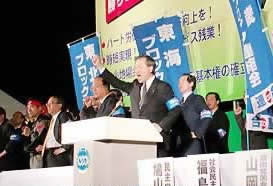 Further, at the rally, the Democratic Party of Japan President Yukio Hatoyama, Social Democratic Party Secretary General Mizuho Fukushima, Liberal Party Chairman of Diet Affairs Kenji Yamaoka also attended. They said that a change in government