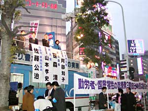 On March 5, RENGO conducted the "10 million signature drive to demand drastic reform for a safe medical care system and to object higher burdens" street campaign in Yurakucho, Tokyo. 200 people including RENGO President Sasamori and lawmakers from the Democratic Party of Japan, the Social Democratic Party and the Liberal Party attended the campaign. Participants appealed to the passersby for signatures and directed their anger at the Koizumi Cabinet who is trying to push ahead by raising burdens without radical reform of the medical care system. Sasamori spoke at the campaign saying, "only the working people