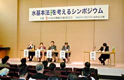 Representing the organizers, RENGO General Secretary Kusano gave the opening address saying, "Presently the jurisdiction of water management is scattered across five ministries. This must be wholly reviewed and we need to legislate a Basic Water Law that includes a comprehensive water management system and fairness and transparency in water administration." He further added, "From now on, we will set up a place where we can have several debates and consider together what sort of basic law that we should have." Continuing, Tokyo University Professor Emeritus of River Engineering Yutaka Takahashi delivered the keynote address saying, "The term water flow has become a keyword. In the basic law we should include a regulation that requires an assessment be made of how water flow is affected by development." In the panel discussion, panelists from a variety of positions including representatives and intellectuals from the forestry, agriculture, and fisheries industries, offered their ideas emphasizing the importance of considering collectively in line with he totality and circularity of water. Opinions from the floor included the following: "We ought to consider the flow of sediment and nutrients including the food cycle." "We must realize our personal responsibility to protect water and the environment." Then, Professor Mitsuru Tanaka, Faculty of Social Science, Hosei University, coordinator of this panel said in closing, "We want to establish a law that that will enable residents to manage the water-to be able to self-govern the water." |