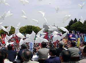 | 73rd May Day Keywords: Peace, Human Rights, Labor, Environment NPOs / NGOs Join Central Rally for First Time (10 May 2002) |