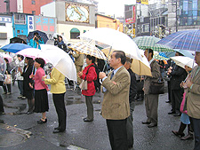That day in the unfortunate rain at TokyoÁs Ogikubo Station, RENGO President Sasamori along with Secretary General Okada of the Democratic Party of Japan (DPJ) and others strongly pleaded to listeners by saying, ËWe are certain that the administration will change with this election. Since its inauguration, the Koizumi cabinet has demonstrated virtually no record of positive change. How long do they intend to let Japan mire in this condition? Out of the 32,000 people who commit suicide annually, it is said that 8,000 kill themselves for economic reasons. Is there any other nation on earth like this? Koizumi said that he would destroy the Liberal Democratic Party (LDP) but what he is really destroying is Japan itself. We must change this cabinet with every single ballot in the next election. LetÁs begin making that change in Tokyo!Ó Riding in the same street campaign bus, DPJ Secretary General Okada called on listeners saying, ËThis election is about a choice of administrations. Have the reforms of the Koizumi shown any progress? At this rate, our nation has no future. LetÁs break down the wall of vested interests.Ó |