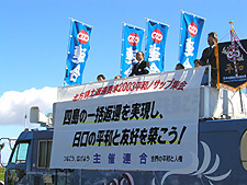 On September 19 and 20, RENGO held its 2003 Peace Action in Nemuro Demanding the Return of Northern Territories wrapping up a series of RENGO Peace Actions that had started with the Peace Action in Okinawa in June. 2,900 participants attended the two-day event pledging to treat the Northern Territories issue as every citizens problem, to advance activities, and boost public opinion for a speedy realization of the return of all four islands immediately.