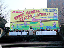 On March 6, RENGO held its 2004 Spring Struggle: 3.6 Central Pep Rally to Secure Jobs and Living Standards at Meiji Park in Tokyo with 15,200 participants in attendance. In his opening speech, RENGO President Sasamori stressed that "the current recovery of business performance is due to the efforts of the working people" and encouraged those in attendance saying "we want the entire organization to support small-and-medium-sized trade union negotiations brought to the forefront for the first time this year, and we will fight so that all organizations can maintain wage curves."