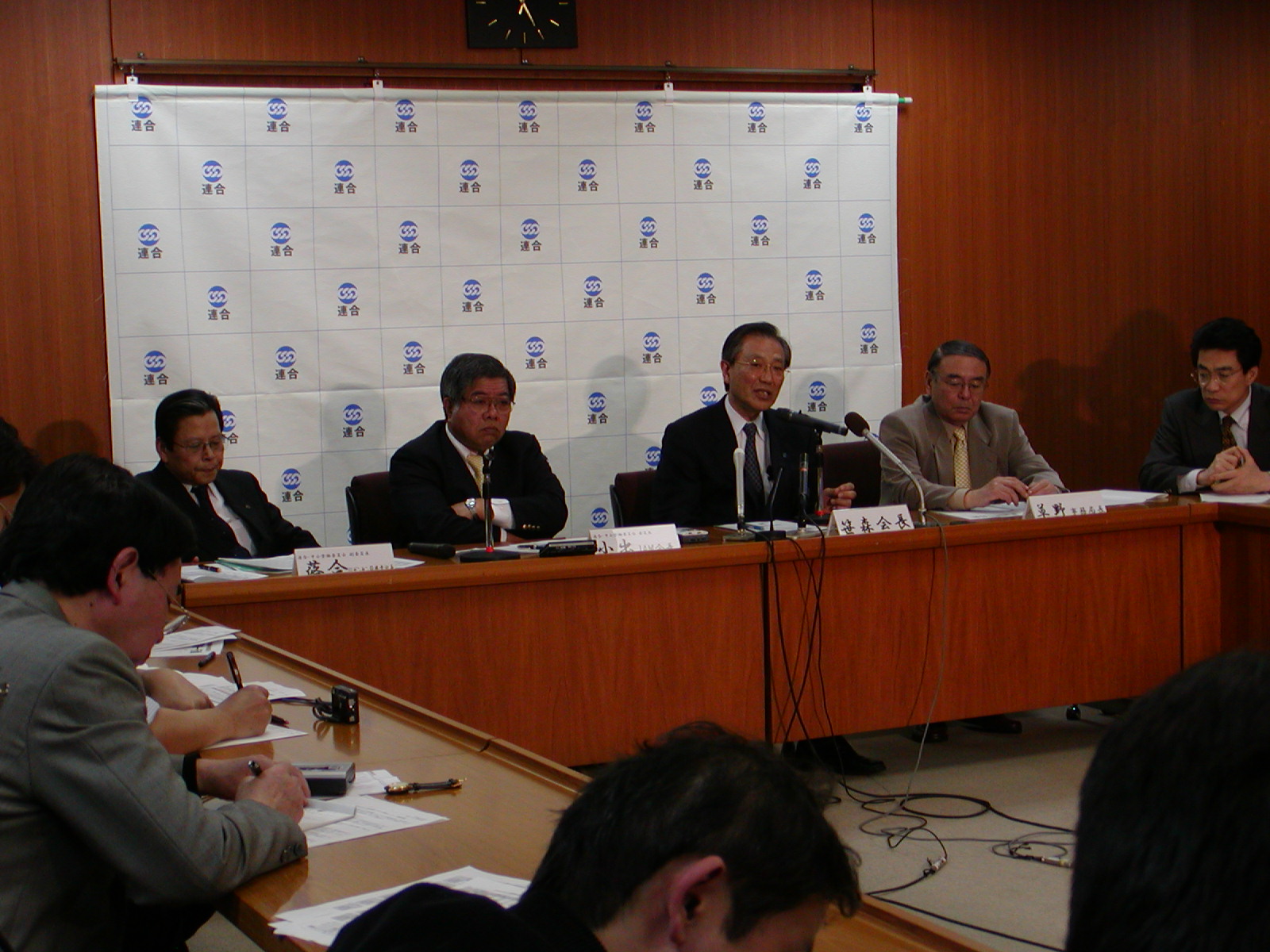 RENGO held a press conference on March 25, biggest peak day for small and medium-sized and local unions during the 2004 Spring Struggle. Attending the meeting, President Sasamori, General Secretary Kusano, RENGO MSE (Medium and Small-sized Enterprise) Joint Struggle Committee Chairperson Koide and Vice Chairperson Ochiai released information regarding the status of negotiations of small and medium-sized/local unions. At this year's Spring Struggle, the peak period for negotiations at small and medium-sized/local unions has been set for March 22-24. The JC (Japan Council of Metalworkers' Unions: IMF-JC) and other preceding unions already received answers for their demands including wage curve maintenance and the full bonus amount demanded between March 17 to 19, the established period for responses for those unions' demands.