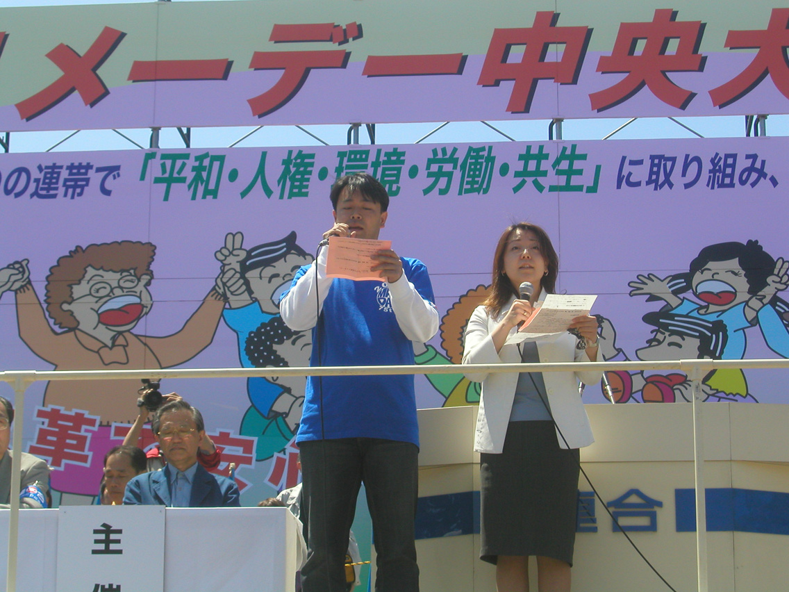 Afterwards, the rally adopted a special resolution demanding radical reform of the pension system. Representatives from RENGO, NGO and NPO released a joint message stating that: "we hereby declare this May Day as the day on which we pledge our mutual collaboration in order to realize a better civil society," after which the May Day Declaration was adopted and the ceremony was closed with the following rousing call led by President Sasamori; "Let's fight."
