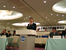 On June 1, RENGO held its 42nd Central Committee Meeting at the Ikenohata Bunka Center in Tokyo, where approximately 300 people including Central Committee members and audience members were in attendance. Among the issues endorsed by the committee were the "2004 Spring Struggle Interim Report," "FY2004-5 RENGO Priority Policies," and the "Establishment of a Control Committee." The committee elected Kazuo Hitomi of JICHIRO to fill the position of Acting President due to current Acting President Sakakibara stepping down from this position.