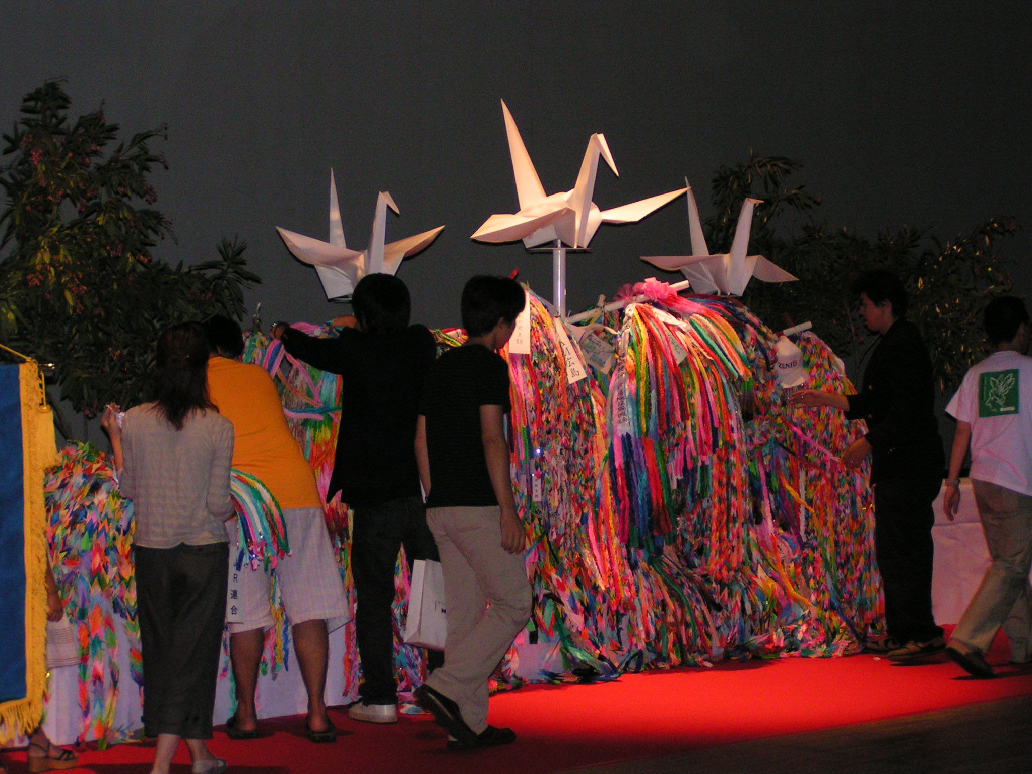 Photo: Union members from across the nation brought and dedicated origami paper cranes. (August 5, Hiroshima)
