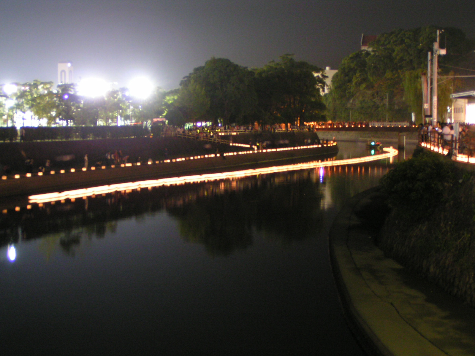 manto lanterns together with local citizens on the Urakami River along with their prayers for the repose of the spirits as well as for peace.