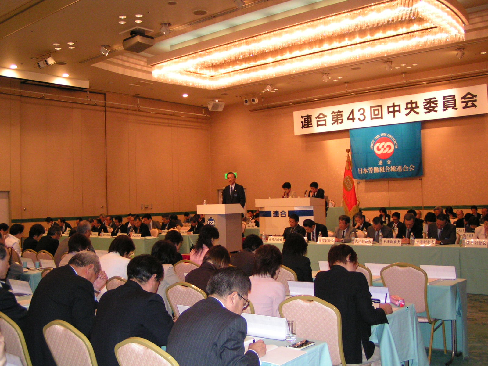 On October 6, RENGO held its 43rd Central Committee Meeting at the Hotel Langwood in Tokyo endorsing its agenda including the 2005 Fiscal Year plan of activities, RENGO demands on the Gender Equal Employment Opportunity Law revision, and activities to realize these goals.