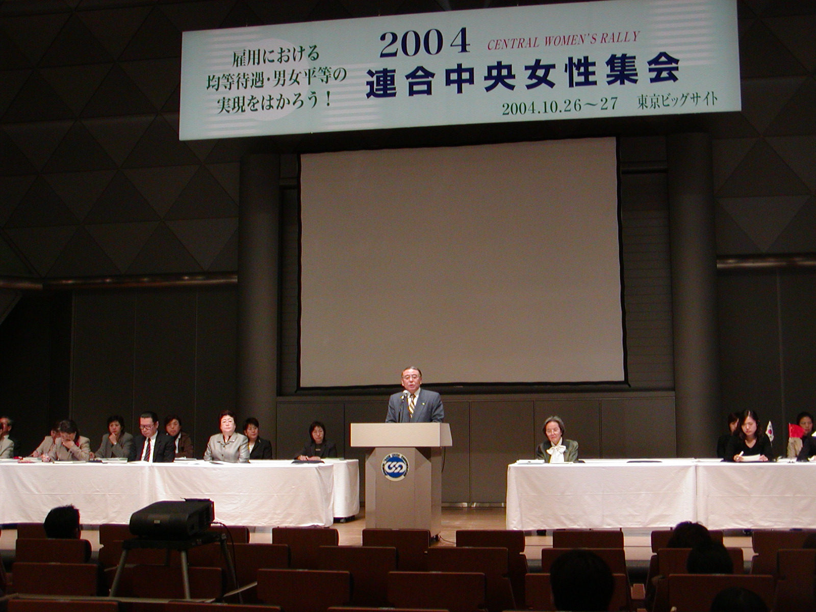 On October 26th and 27th, RENGO held the 2004 RENGO Central Women’s Rally at the Tokyo International Exhibition Center (Tokyo Big Sight). 1046 attendees (741 female, 305 male) from affiliates and Local RENGOs nationwide participated the rally, vigorously exchanging their opinions in the general meetings as well as in sectional meetings on the theme of "realizing equal treatment and gender equality on the job!"