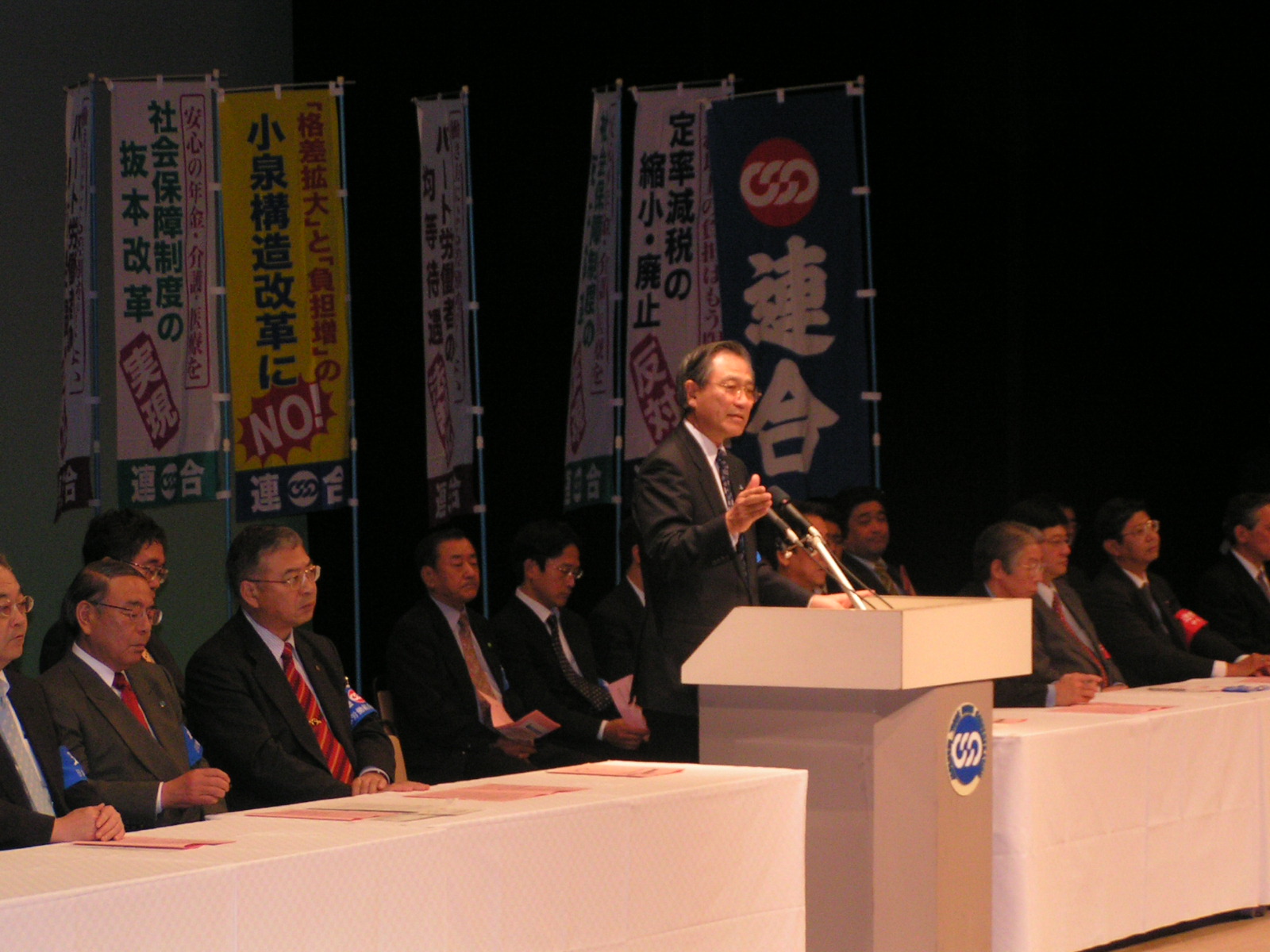 Attendees raised their voices from the floor of the venue saying that they "are unable to feel any sense of security about the future" and that they have "misgivings about pensions" and have a "hard time making ends meet." Dispatched workers also made their heartfelt appeals known by saying that "we are emotionally strained due to worries whenever we think about the possibility of our being fired. We seek even the slightest improvement in our situation terms at the Spring Struggle."