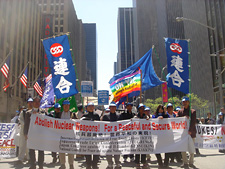 Photo: ICFTU, RENGO, GENSUIKIN, KAKKIN lead a demonstration march for the abolition of nuclear weapons. (May 1st, 6th Avenue, New York)