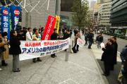 On February 24th, 80 unionists gathered in front of the U.S. Embassy in Tokyo to participate in a protest rally against sub-critical nuclear testing (conducted on the afternoon of Feb. 23rd U.S. time - 5a.m. Feb. 24th Japan time) which is being forced by the United States and Great Britain. The rally was co-sponsored by GENSUIKIN (Japan Congress against Atomic and Hydrogen Bombs), KAKKIN Kaigi (National Council for Peace and Against Nuclear Weapons), and RENGO Local of Tokyo.