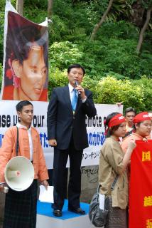 In such a very tense situation, groups of Burmese residents in Japan including Japan Branch of the National League for Democracy (NLD) and other groups which support democratization of Burma got together in an urgently organized rally today. The sudden indictment brought in by the military regime just at the time when her house arrest is going to expire soon is not only a matter of Burmese domestic law but it is also a serious international matter. The international society is called for acting in concert for an early solution of the situation of this time. .