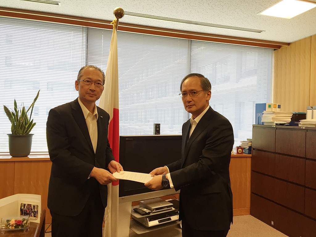 Rikio Kozu, General Secretary of RENGO, handed the document to Yasumasa Nagamine, Deputy Minister for Foreign Affairs & Chief Negotiator.Mr. Nagamine replied that RENGO’s concerns would be reported to Prime Minister Abe and well announced within the government. Also, he touched upon each item in the document as follows: